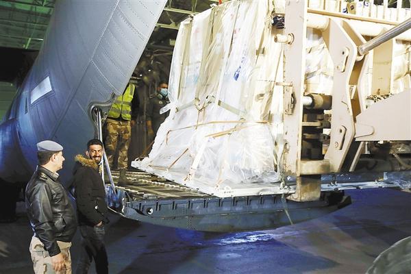 3月2日,工作人员在伊拉克巴格达的空军基地从飞机上卸载中国新冠疫苗。 中国援助伊拉克的首批国产新冠疫苗2日运抵巴格达。 新华社发