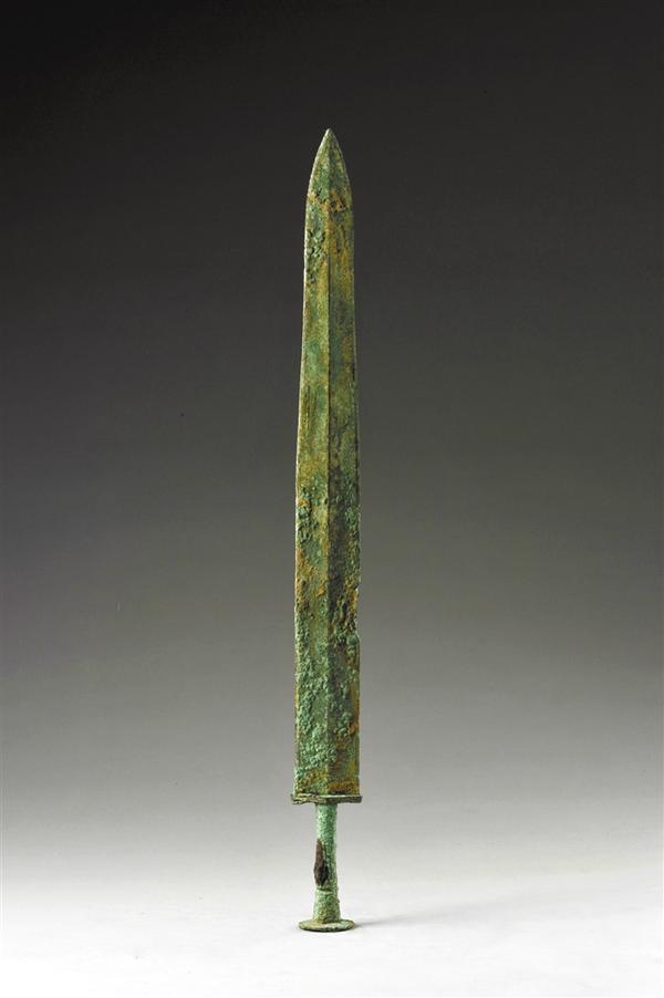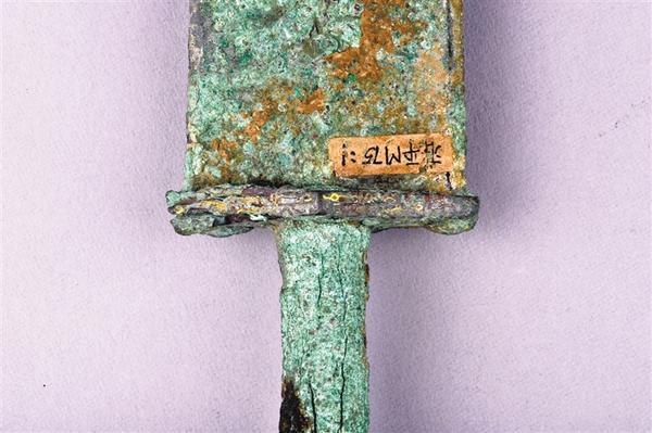 他们仔细分析比较了夯土的软硬程度,判断这是另一座南北方向的墓打破了原来那座东西方向墓的墓道。从出土的文物判断,南北方向的墓是汉墓,而东西方向的墓是楚墓。在楚墓的墓室里,他们挖出了大量的青铜器和玉器,其中还有一把青铜剑,但这把剑的柄已经残缺,从剑上的铭文看,这是一把越王剑。