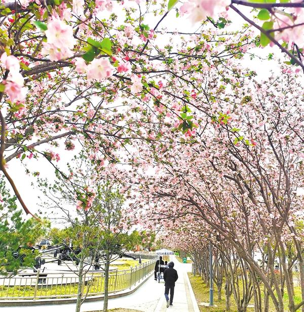 连日来,周口公园里的海棠纷纷绽放,引来不少市民前来赏花。公园内的道路旁,海棠已进入盛花期,粉色的花朵如梦似幻,令人沉醉。
