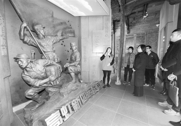 3月22日,在杭州市临安区高虹镇的高虹新四军纪念馆,讲解员为游客进行讲解。浙江省杭州市临安区高虹镇结合当地红色资源,以新四军纪念馆为依托,联合龙门秘境村落景区,推出乡村红色之旅系列活动,助推当地美丽乡村发展。新华社发