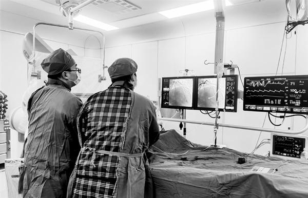 当晚9:30分,郭大爷到达医院,直接被送进导管室。