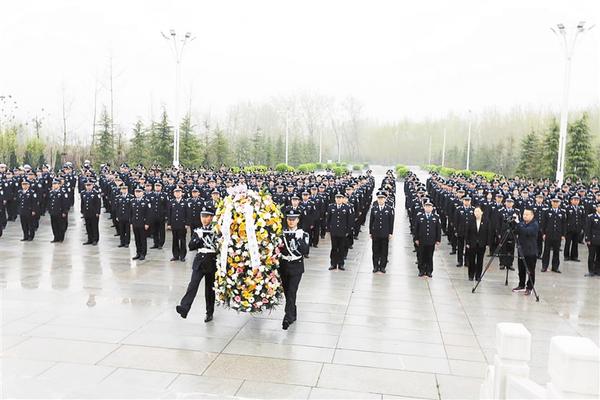 4月2日上午,市公安局300余名民警在我市爱国主义教育基地,向烈士纪念碑敬献花篮。 记者 侯国防 通讯员 任君箫 摄