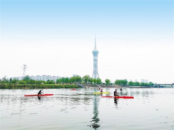 4月7日下午,市体校赛艇队、皮艇队、划艇队的运动员们在沙颍河加紧训练。他们力争以最饱满的热情、最昂扬的斗志、最刻苦的精神、最坚韧的毅力,在赛场上争金夺银,为周口体育事业再上新台阶贡献自己的力量。记者 窦娜 摄
