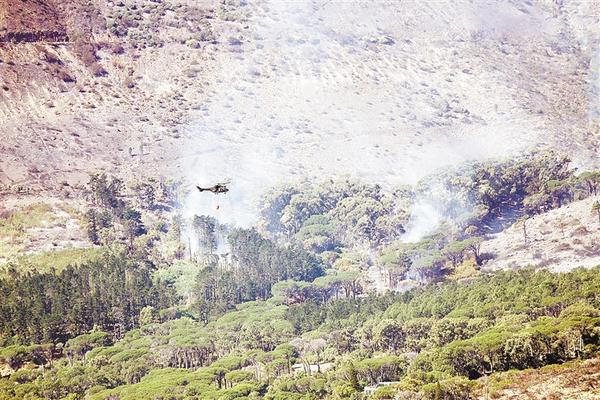 4月20日,一架军用直升机在南非开普敦弗雷德胡克地区附近灭火。