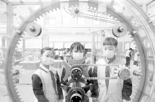 4月23日,学生在邢台市襄都区“流动科技馆”里体验“巨型转轮”。当日,由河北省邢台市科学技术协会承办的“中国流动科技馆”全国巡展邢台襄都站吸引众多学生前来参观、体验。该站巡展为期60天,涉及声、光、电、磁等科学设置,旨在引导青少年体验科学、参与科学。新华社发