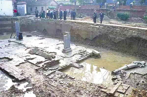 经过8个月艰苦细致的工作,在祭祀老子母亲的洞霄宫,发掘证实其主体面积达万余平方米。从建筑布局、建筑材料和建筑特点来看,洞霄宫为唐代所建。现场,还清理出唐宋时期的殿址、回廊、柱础、建筑构件、生活用具和金代碑刻等。经考古勘探得知,洞霄宫面积达2.4万平方米,东西有三个院落,南北至少有两进,殿堂三间,院落的隔墙两侧都建有回廊。在寝殿回廊东北角发现9块金章宗完颜璟泰和元年的洞霄宫庙产碑,碑文记述了洞霄宫所属土地的位置、面积。据统计,金代洞霄宫拥地合计约5300亩。