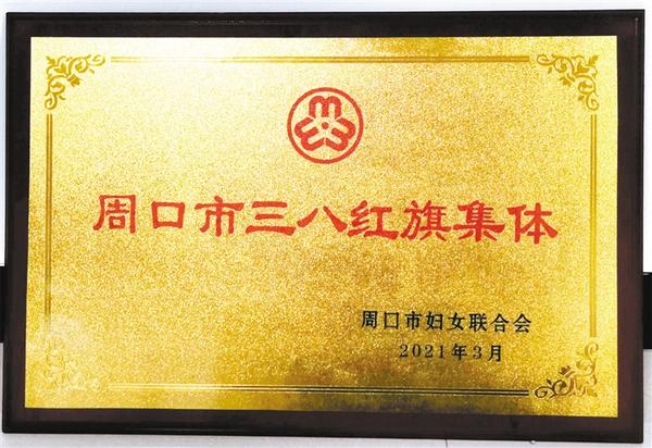 本报讯 (记者 侯国防 通讯员 艾义麟) 近日,周口市妇联对2021年度周口市三八红旗集体、周口市三八红旗手和妇联系统先进集体进行隆重表彰。会上,周口港区医院(周口烧伤医院)荣获“周口市三八红旗集体”称号(如图),该院脊柱科护士长、第三批援鄂队员郑艳平被评为“周口市三八红旗手”。