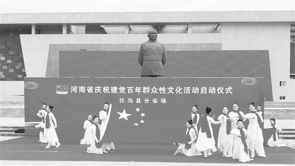 4月28日,扶沟县在吉鸿昌将军纪念广场举行庆祝建党100周年“群心永向党,奋进新时代”系列群众文化活动启动仪式。本次活动是河南省庆祝建党100周年系列群众文化活动启动仪式分会场,当天全省共有13个县市同步启动。扶沟县历史悠久,文化底蕴深厚,人杰地灵,英才辈出,是省文化和旅游厅选定的13个全省具有浓厚红色文化基因的市县之一,是周口市唯一入选的县,图为活动现场。 记者 金月全 摄