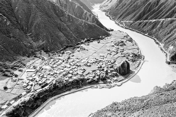 穿越金沙江,岗托村阿尼松钦山壁上的“西藏”两个红色大字赫然在目。