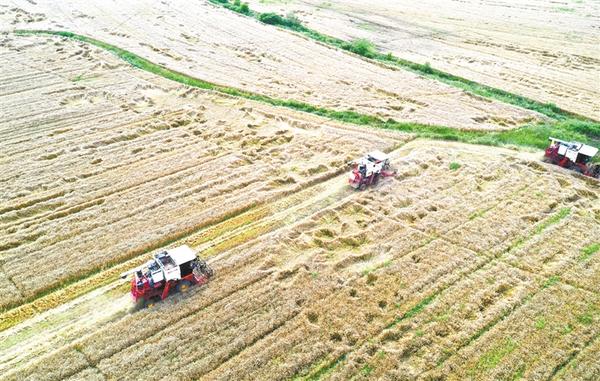 “三夏”时节,安徽各地麦收进入高峰期,农民抢收小麦,确保颗粒归仓。
