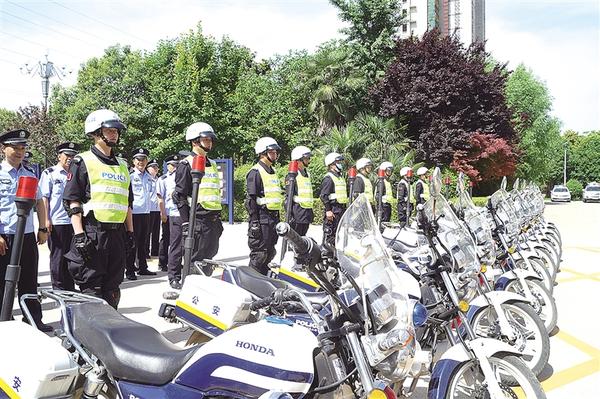 在时文慧的带领下,参会人员面向党旗集体宣誓。李祥生宣布“川汇区公安分局庆祝建党100周年高等级社会面巡逻防控全面启动”,20辆警用摩托车、18辆警车组成的巡逻车队警灯闪闪、浩浩荡荡,沿川汇路、建设大道、七一路等重要路段进行巡逻。