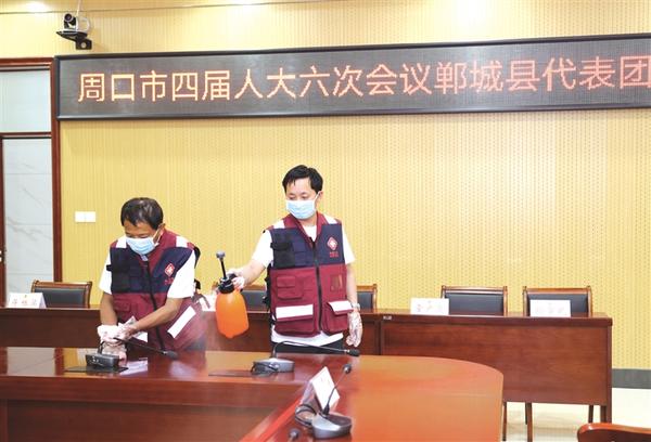 此次市两会是在疫情防控常态化的背景下召开的,县卫健委组织县疾控中心以及各医健集团,在会场和宾馆严格采取疫情防控措施(如图)。县供电公司配网办专责和城郊供电所坚守在电力供应及应急电源设备间,为会场电力供应作出应有贡献。县委组织部电教中心和联通公司负责与市里主会场视频会议信号对接,保障郸城分会场音频清晰流畅、视频高清稳定。