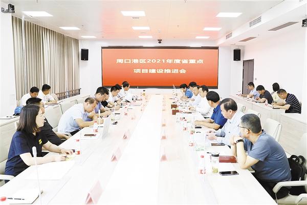 本报讯 (记者 宋风 文/图) 6月12日,周口港区召开2021年度省重点项目建设推进会,研究部署益海嘉里(周口)现代食品产业园、重卡物流园等项目建设工作(如图)。港区管委会主任程若光要求,要树立“项目为王”理念,全力以赴加快重点项目建设进度。港区领导杜广贤、张东立、李翔、刘学庆、李素芹、康群泉出席会议并对服务项目建设提出具体要求。