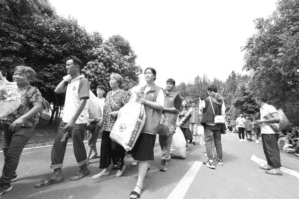 记者在现场看到,得到回家的信息后,宁庄村民一个个收拾好简单的行李,排着长长的队伍,等候在校园的甬路上。此时,一位拄着单拐的女士引起了记者的注意。“你这腿怎么了?”记者上前询问。“上段时间扭住了,伤住了骨头,不能走路,只好拄个拐杖。”询问得知,女士名叫李海锦,宁庄村人。“在这生活怎么样,吃饭各方面的还可以吧?”还没等记者把话说完,李海锦倒是先流出了眼泪,记者感到莫名其妙,难不成在这里受了什么委屈?“在这十来天里,都是这些志愿者把饭给我送到身边,帮我买药、敷药,有时背我上下楼,我对他们的感谢真是无法用语言表达。”李海锦告诉记者,她这会儿一直在找一个志愿者,这个志愿者每天细心照顾她,马上该走了,她想当面对她说声谢谢。经过记者了解,志愿者名叫尹保争,前几天听说有受灾群众在此安置,她立即加入了志愿队伍,要为这些群众提供一些力所能及的帮助和关心。“妹子,我这一辈子也不会忘记你,也不知道咋感谢你才好,就是临走前不见你一面心里难受。”说话间,泪珠在李海锦眼里滴溜溜直转,终于如断线的珍珠落了下来,她猛地抱住了尹保争,久久不愿松开。还有,将要上大二的志愿者郭尚庆带她去医院看腿病,帮她买药,也让她感动不已。