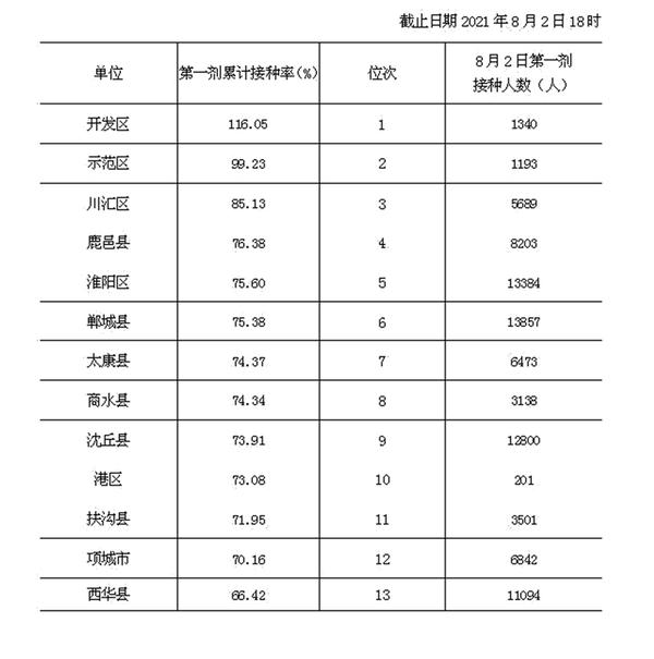 目前,全市新冠病毒疫苗接种工作已进入攻坚阶段,为强力推进各县(市、区)新冠病毒疫苗接种进度,确保按照规定时间完成省定任务,现将各县(市、区)接种进度通报如下: