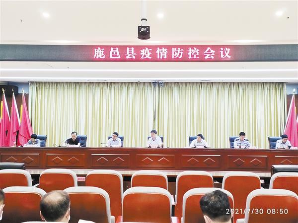 本报讯 (记者 李瑞才 文/图) 7月30日,鹿邑召开疫情防控会议(如图)。县委书记李刚出席会议并讲话。郭俊涛、金溪、任金瑞、张峰、谷长征、曹玉娟等县处级领导干部出席会议。