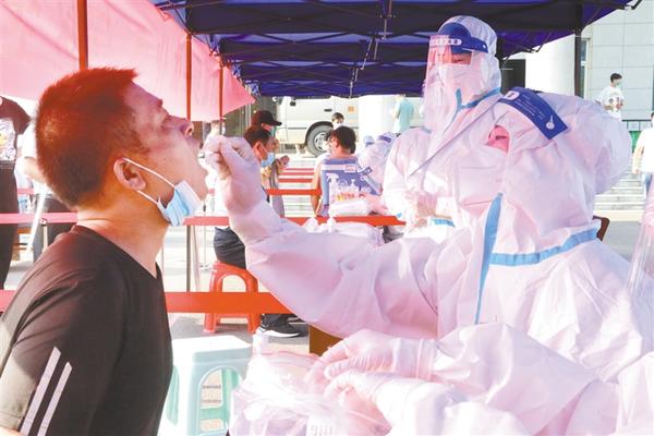 本报讯 (记者 张劲松 任富强 文/图) 为进一步做好新冠肺炎疫情防控工作,切实提高全员核酸检测应急能力,8月8日,示范区在招商大厦院内举行全民核酸检测应急演练。