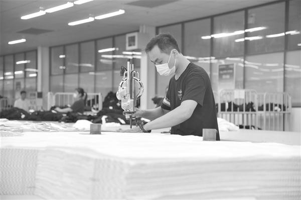 8月10日,在商水县盛泰纺织服装产业园内,一技术人员正操作电脑制衣裁床裁剪布料。该产业园长期代工雅戈尔、FILA等国内外品牌服装,是多个世界品牌高档正装、休闲衬衫等服饰的设计、制造商之一。 记者 付永奇 摄