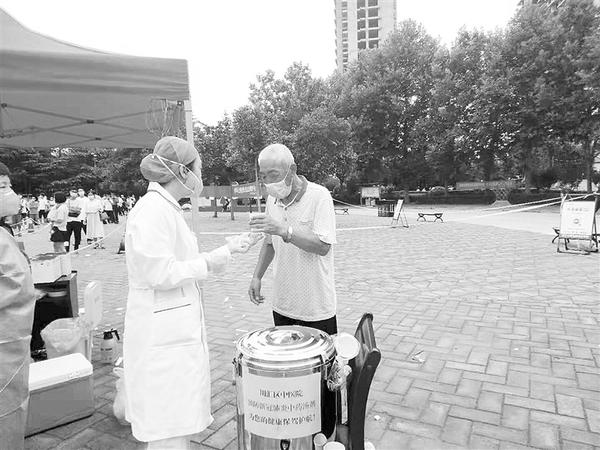 8月10日,川汇区中医院医务人员熬制防疫中药汤剂,在联盟新城核酸检测现场设立预防新冠肺炎中药饮用点,为群众免费提供中药汤剂,受到群众好评。