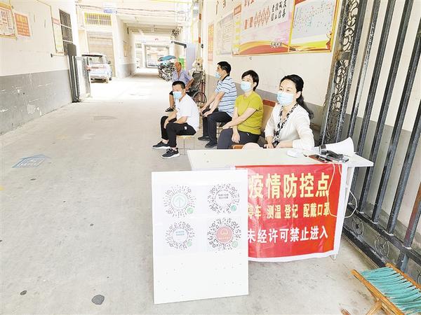 项城市作出《关于抽调部分市直单位人员到六个街道参与疫情防控的通知》后,周口市生态环境局项城分局第一时间响应号召,坚持周六周日全员上班在岗,领导班子成员带队到光武街道参与疫情防控。图为8月8日该局工作人员在某小区值勤。 记者 杨光林 摄