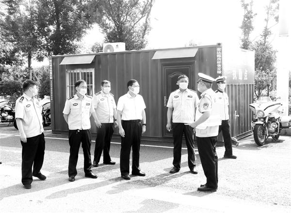 连日来,郸城县公安系统民警辅警奋战在疫情防控第一线,严格贯彻落实各项疫情防控要求,认真做好过往车辆和人员的疫情防控检查工作,守好一道门、护好一座城,确保不漏一车、不漏一人,切实保障全县人民群众生命安全和身体健康。图为该县领导在疫情防控卡点检查工作,慰问执勤民警辅警。