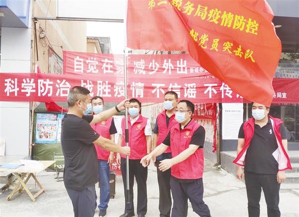 此次新冠肺炎疫情发生以来,商水县税务局迅速行动,选派36名党员干部,组建2个临时党支部、6个党员突击队,在社区管控段等重点区域设置6个卡点,日夜值守,为打赢疫情防控保卫战奉献税务人的力量。 记者 付永奇 摄