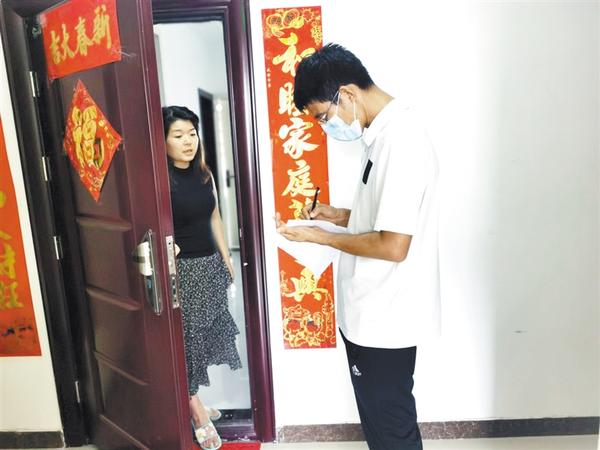 图一为沈丘县委巡察办工作人员深入颍滨上城小区,对小区内返乡人员信息和疫苗接种情况进行逐个排查登记,筑牢社区防疫长城,引领同心战“疫”力量。