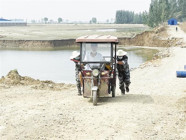 洪水退去以后,浚县的许多农田出现严重积水。积水不除,在高温作用下,被浸泡的植物不仅容易滋生蚊虫也不利于灾后重建工作。因此,排涝,成了浚县的当务之急。
