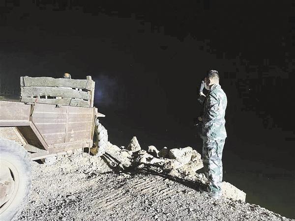 图四:七夕节是救援队员乔海燕的生日,本打算和家人一起过生日的他直到深夜仍在大堤上指挥车辆。