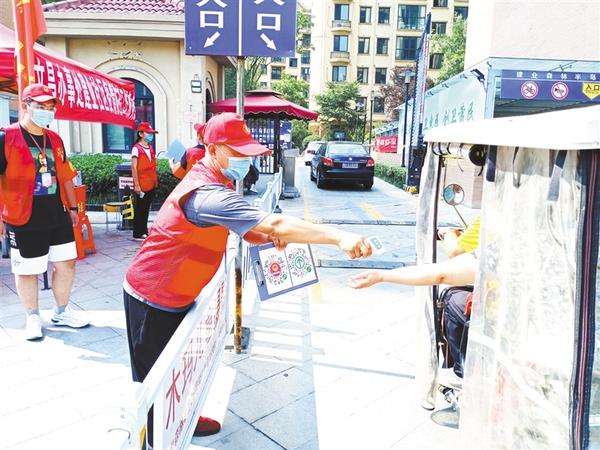 在位于周口中心城区的建业社区,今年38岁的教师闫本明带领着一群大学生在卡点前不停地忙碌,看到有人进入社区,他们就会拿起测温设备,让居民测体温,提醒居民佩戴好口罩。他们穿着红马甲、戴着小红帽,穿梭于居民之间,那一个个闪动着青春力量的身影,成为一道靓丽的风景线。