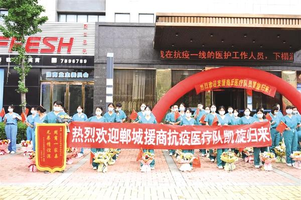 8月21日,按照郸城县委、县政府和县卫健委统一调派,由县医共体人民医院、中医院、中心医院、妇幼保健院51名医护人员组成的疫情防控医护队,在商丘圆满完成各项支援任务后,载誉返回家乡。据悉,这支医护团队将按要求做好隔离防护措施,而后返回工作岗位。