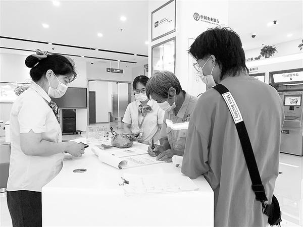 ③近日,农行周口分行深化“以客户为中心”的服务理念,想客户所想,急客户所急,把为特殊群体提供专属服务的理念落到实处,展现农行良好的企业形象。图为8月24日农行周口分行营业部大堂工作人员正在为一老年客户办理业务。