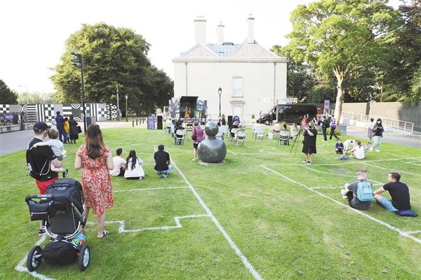 8月28日,人们在爱尔兰都柏林的爱尔兰现代艺术博物馆欣赏“中国文化路演”户外音乐表演。由中国驻爱尔兰大使馆、当地侨社和爱尔兰文化部门联合主办的“中国文化路演”户外音乐表演活动28日在爱尔兰首都都柏林和周边地区举行,活动受到当地民众的热烈欢迎。新华社发