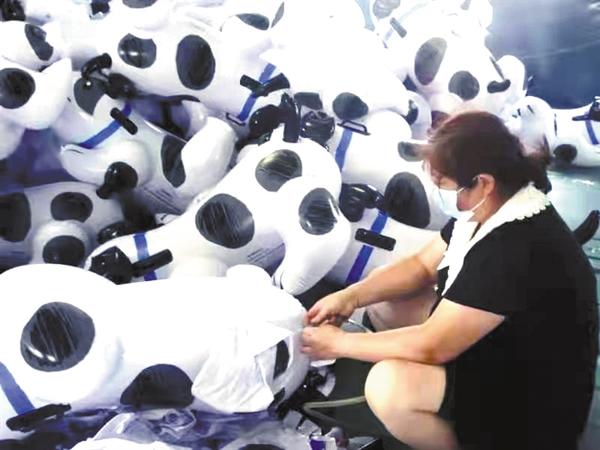 8月31日,沈丘县洪山镇一家运动休闲用品有限公司生产车间,工人正在加工生产订单出口儿童玩具。