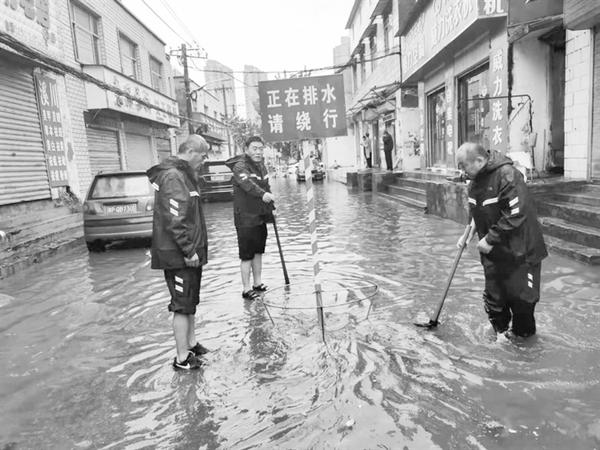 长时间泡在积水中,他们的衣服早已全部湿透。“这是我们排水队员的常态。”李战响告诉记者,每逢雨季汛期,他们必须坚守岗位,就这样等雨来、盼雨去,“为了让居民早上出行没有障碍,我们应排尽排,让积水早点消退,确保通行顺畅。”