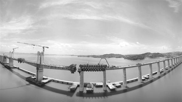 当日上午,由中铁十一局承建的新建福厦铁路湄洲湾跨海大桥最后一孔移动模架现浇梁开始浇筑,并将于当晚结束浇筑,完成首次海上高铁架梁任务。下一步,该模架将整体后移,在海岸上进行拆解,运输至下一工程项目,继续发挥作用。这个被称为“高空移动的桥梁预制工厂”的高铁移动模架,可行进在已完成的桥墩进行高铁箱梁现场浇制施工,最大承载重量达1200吨,可抵御14级台风,解决了“千吨级”40米箱梁海域现浇施工的难题,是我国目前最大跨度的高铁移动模架。