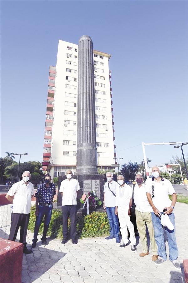 9月4日,在古巴首都哈瓦那革命广场区的“旅古华侨协助古巴独立纪功碑”前,曾赴华留学的古巴退役飞行员和机修师敬献花圈后合影。1959年古巴革命取得胜利。1961年9月,包括苏比雷斯在内的223名古巴年轻人前往中国,学习战斗机飞行和修理。两年后,他们返回古巴,成为古巴空军的中坚力量。此后的每一年,他们都要聚首,共同回忆在中国度过的峥嵘岁月。 新华社发(华金·埃尔南德斯 摄)