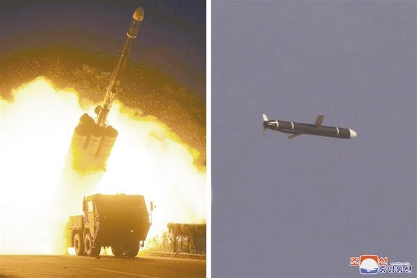 这张朝中社9月13日提供的拼版图片显示的是朝鲜国防科学院试射新研发的远程巡航导弹。