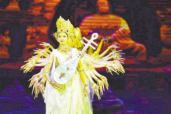 9月24日,演员在“一会一节”活动开幕式上演出。当日,第五届丝绸之路(敦煌)国际文化博览会和第十届敦煌行·丝绸之路国际旅游节(简称“一会一节”)在甘肃省敦煌市开幕。新华社记者 陈斌 摄
