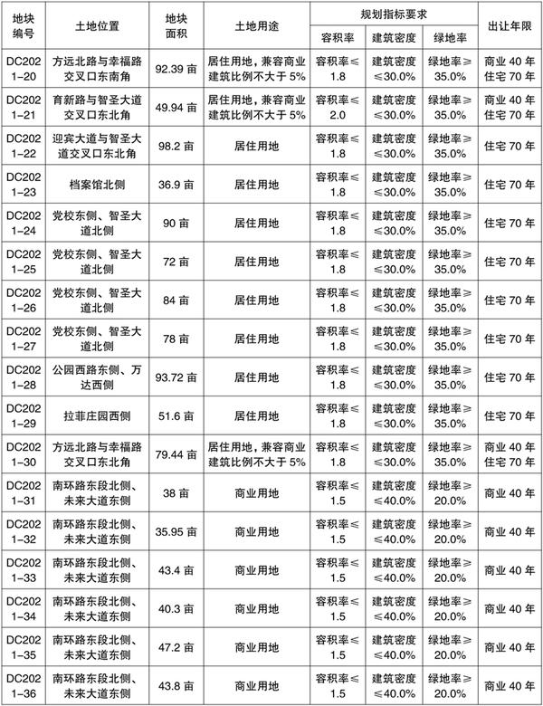 一、预公告宗地基本情况(详情见下表)。