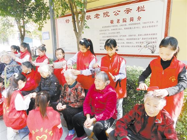 10月13日,商水县舒庄乡杜店小学的爱心志愿者,在舒庄乡敬老院为老人梳头、剪指甲。为对学生进行爱老敬老教育,重阳节前夕,杜店小学组织20名爱心志愿者到敬老院为老人打扫卫生、梳头、剪指甲、叠被子。