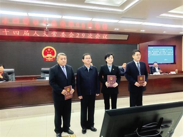10月13日上午,郸城县十四届人大常委会第二十九次会议召开。依法决定任命牛海燕、袁征为郸城县人民政府副县长,王萌为郸城县自然资源局局长。牛海燕、袁征、王萌进行了宪法宣誓。县人大常委会主任李建军颁发任命书。