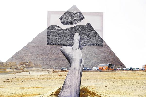这是10月21日在埃及吉萨金字塔景区举办的艺术展上拍摄的一件艺术作品。首届金字塔国际艺术展10月21日在埃及吉萨金字塔景区开幕,来自埃及、美国、俄罗斯等国的十余位艺术家在景区内露天展出了大型雕塑等艺术作品。新华社发