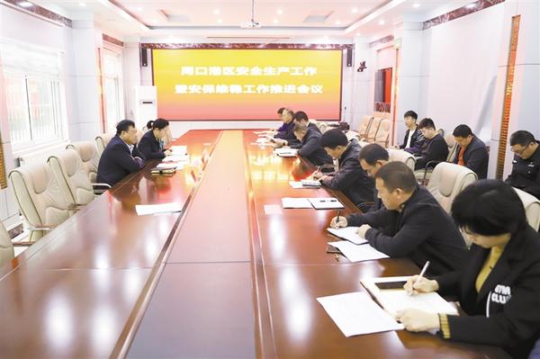 本报讯 (记者 宋风 文/图) 10月19日,周口港区召开安全生产工作暨安保维稳工作推进会议(如图),通报和研判当前全区安全生产和安保维稳工作形势,查找存在的问题,安排部署下一步工作。港区党委委员杜广贤、港区纪委书记李素芹出席会议。