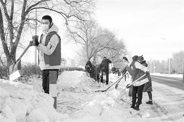 11月24日,鸡西市交通运输局工作人员在道路上清理积雪。
