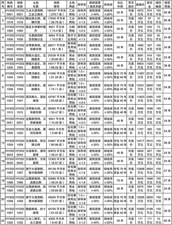 一、拍卖地块的基本情况和规划指标要求(详情见右表)