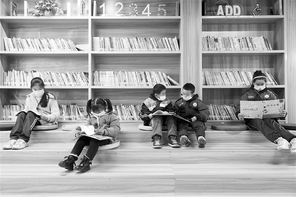 孩子们在“城市书房”阅读书籍(12月23日摄)。