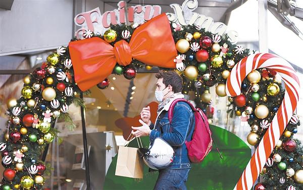 12月23日,在法国巴黎香榭丽舍大街,一名男子走过一处圣诞装饰。随着圣诞节、新年的临近,法国人近日纷纷抢购节日商品。欧盟统计局数据显示,11月欧元区通胀率攀升至4.9%,创25年新高,其中能源价格同比上涨27.4%,是推高通胀的主因。新华社记者 高静 摄