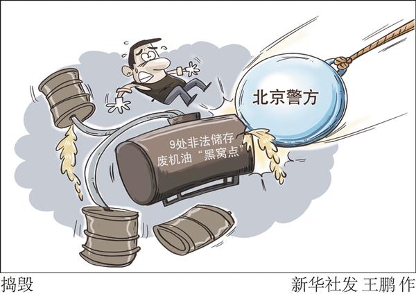 记者12月27日从北京市公安局获悉,按照“昆仑2021”专项行动部署,北京警方联合北京市生态环境部门于近期打掉5个非法收集、运输、储存、倒卖废机油污染环境的违法犯罪团伙,捣毁9处非法储存废机油污染环境的“黑窝点”,依法刑事拘留65人。新华社发 王鹏 作