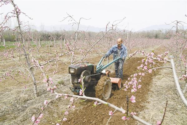 3月26日,河南省济源市克井镇勋掌新村农民在桃园耕作。